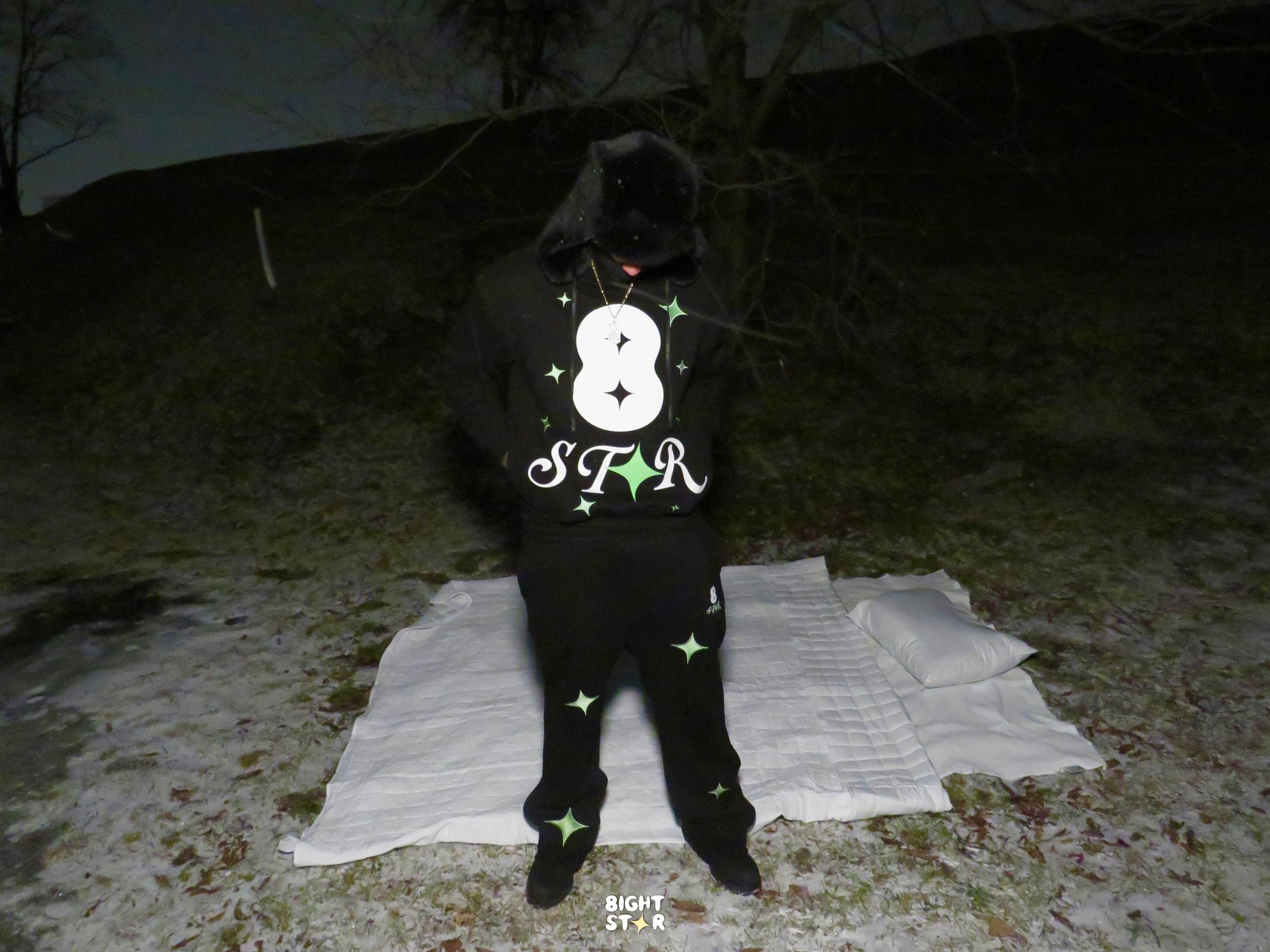 Crafted in deep black, this two-piece sweatsuit features a relaxed hoodie and matching pants designed for everyday wear. Soft yet structured, it offers warmth, durability, and a grounded feel. Signature 8 Star motifs symbolize direction and forward motion, while minimal detailing keeps the design quiet, confident, and intentional.